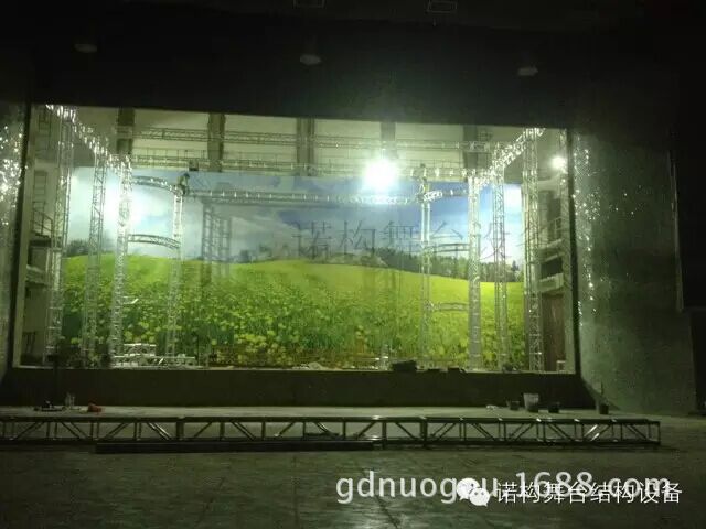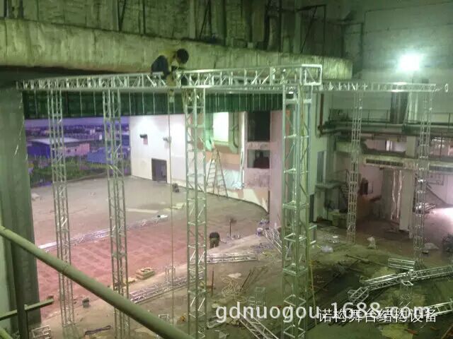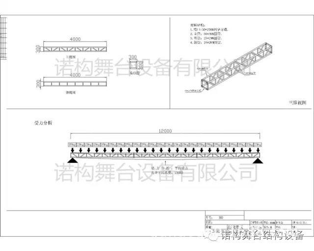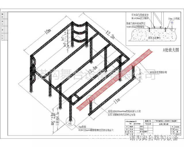 此次工程設(shè)計施工屬于廣東某區(qū)政府的公益性影劇院的改造工程。諾構(gòu)舞臺設(shè)備公司有幸參與了此次改裝的前期設(shè)想溝通到設(shè)計及施工的全過程。原本初步設(shè)計是采用葫蘆吊掛式安裝改造燈光桁架,由于預(yù)算有限最后修改方案改成固定安裝,即便如此也經(jīng)歷了多次方案修改才定下最終方案。為了能保證工程的順利完工,本著“專”“精”“細(xì)”的原則,在設(shè)計的時候就進(jìn)行了荷載受力分析,及施工細(xì)節(jié)的標(biāo)注,細(xì)致到立柱與地面如何進(jìn)行固定,用何種規(guī)格的螺栓等等。下面就分享一些圖片供大家參考!