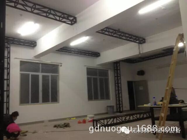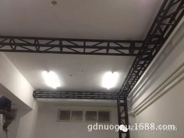 首先將橫梁按與天花相距40-50毫米的距離安裝,同時把橫梁生產(chǎn)成200*300mm規(guī)格燈光架,而立柱為了考慮穩(wěn)定性及美觀則保留為300*300mm四方規(guī)格,最終呈現(xiàn)如下現(xiàn)場實際效果。