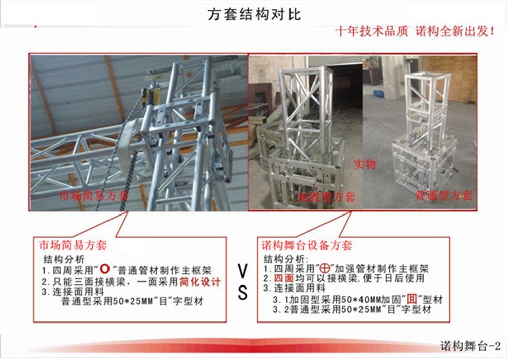 諾構(gòu)公司核心成員從業(yè)舞臺結(jié)構(gòu)設(shè)計及現(xiàn)場施工長達十幾年,在這些年時間里,一直秉承“安全第一、合理組合產(chǎn)品”為第一要素,為了讓廣大客戶能更合理的選配各種型號的燈光桁架、舞臺等舞臺結(jié)構(gòu)設(shè)備,我們從需求分析、產(chǎn)品、方案等多個角度為客戶提供投資建議,充分體現(xiàn)出業(yè)務(wù)及技術(shù)方面的“專”、“精”、“細”。以價值的有效傳遞為基點,快速促進互信合作!